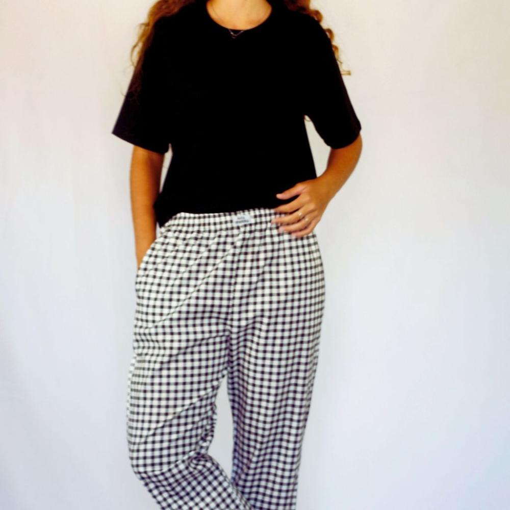 Calça Vichy xadrez preta em tecido de tricoline 100% algodão
