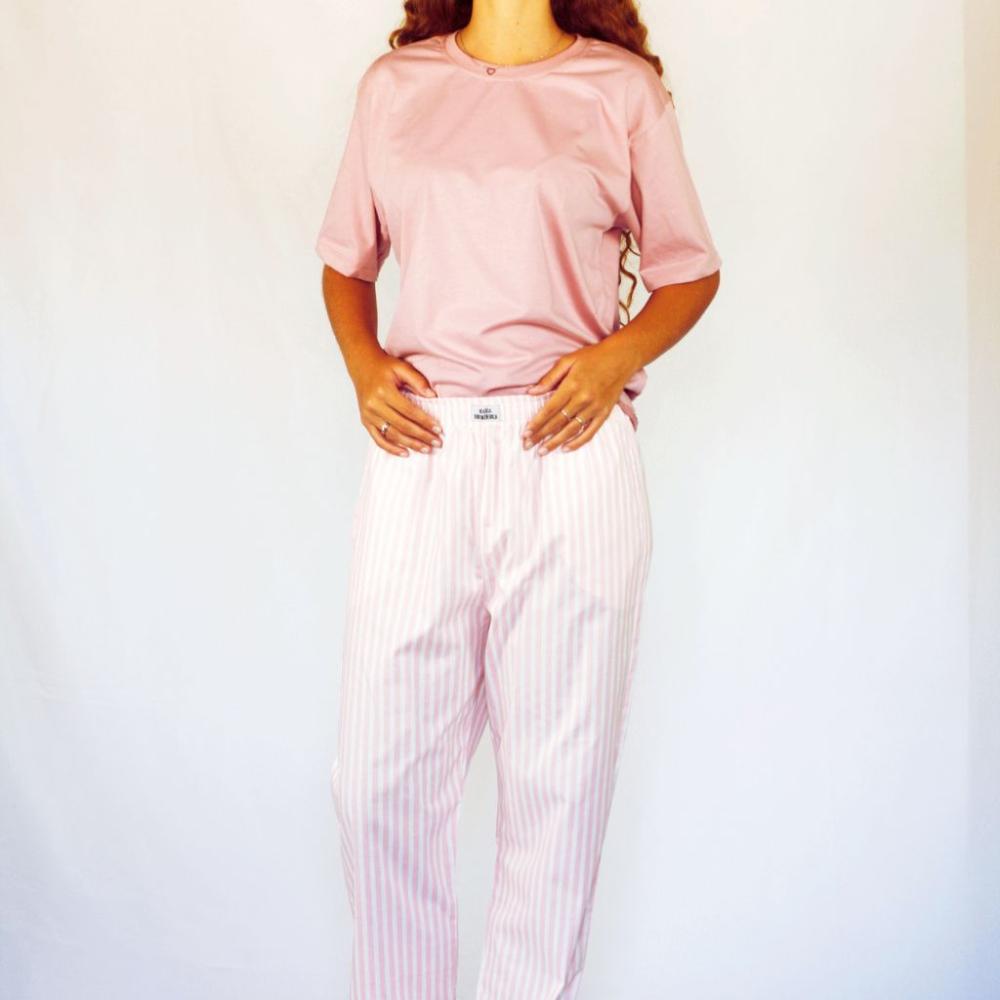 Calça rosa candy listra média em tecido de tricoline 100% algodão